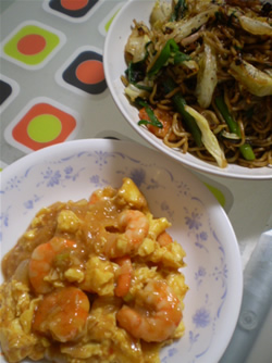 焼きそば麺で作るナポリタン。 煮るスパゲティよりさらに早い。 焼きそばの作り方のまま コンソメ・ケチャップ・塩コショウ・ニンニクで 味付けしたもの。 ちょっと長く炒めすぎたみたいで 柔らかかった。 そこそこ旨いです ![]() スピード料理には 中華めんが使えます。 |