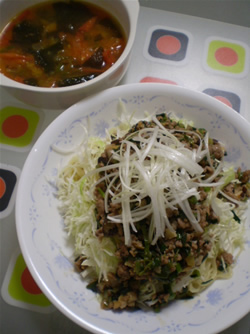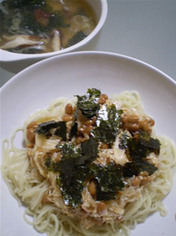 ごまだれ冷やし中華で作ったジャージャー麺風。 豚ひき・しいたけ・キャベツ・にらをごまだれと豆板醤で味付け。 簡単でかなり旨かった。 納豆キャベツ冷やし中華。 ごまだれとマヨネーズをあえただけ。 納豆そばみたいなもん。 わかめとしいたけスープを作っても 全部で5分でできる。 これも旨い。 PR |